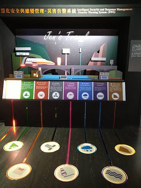 在等待展演前,先參觀此區的其他展示。踩地板上的圖形,就會連動到版上亮燈。