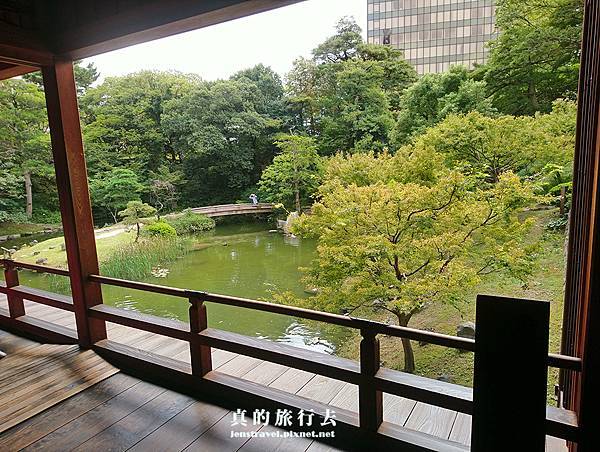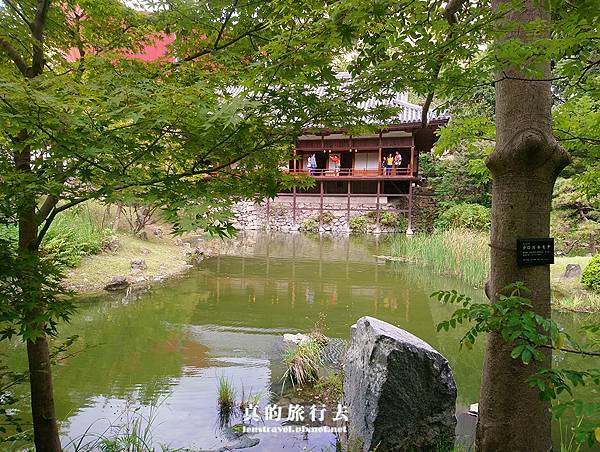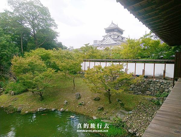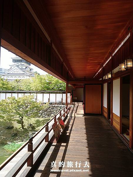 從庭園的廊道可以看到天守閣,覺得很美,有一種來到唐代的感覺
